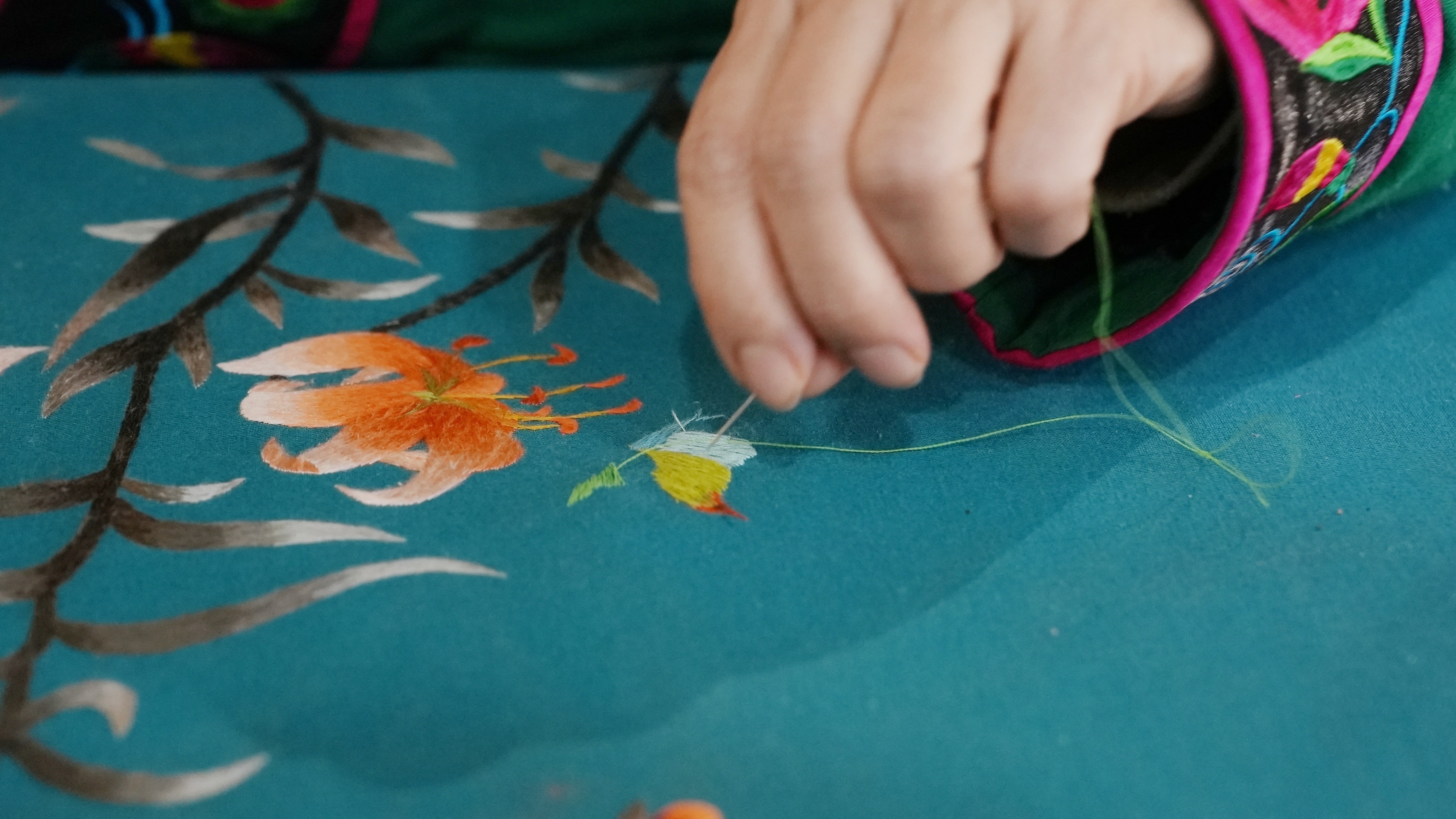 图为王桂珍利用空闲时间赶制刺绣订单。新华社记者 恩浩 摄在自家牧场忙完,乌兰毛都苏木牧民王桂珍来到萨日朗巾帼民族手工艺合作社,开始经营自己的副业:用传统的札萨克图刺绣工艺,为一位新娘赶制嫁衣。火红的萨日朗花、生动灵秀的蝴蝶、翩然起舞的飞鸟等草原常见元素,在针线挑动间一一呈现。“由于刺绣工作是兼职,加上工艺复杂,这件嫁衣至少需要制作2个月,售价1万多元。”王桂珍说,她通过合作社接到的刺绣订单,让自己在牧业生产之余,每年增加2万到3万元的收入。