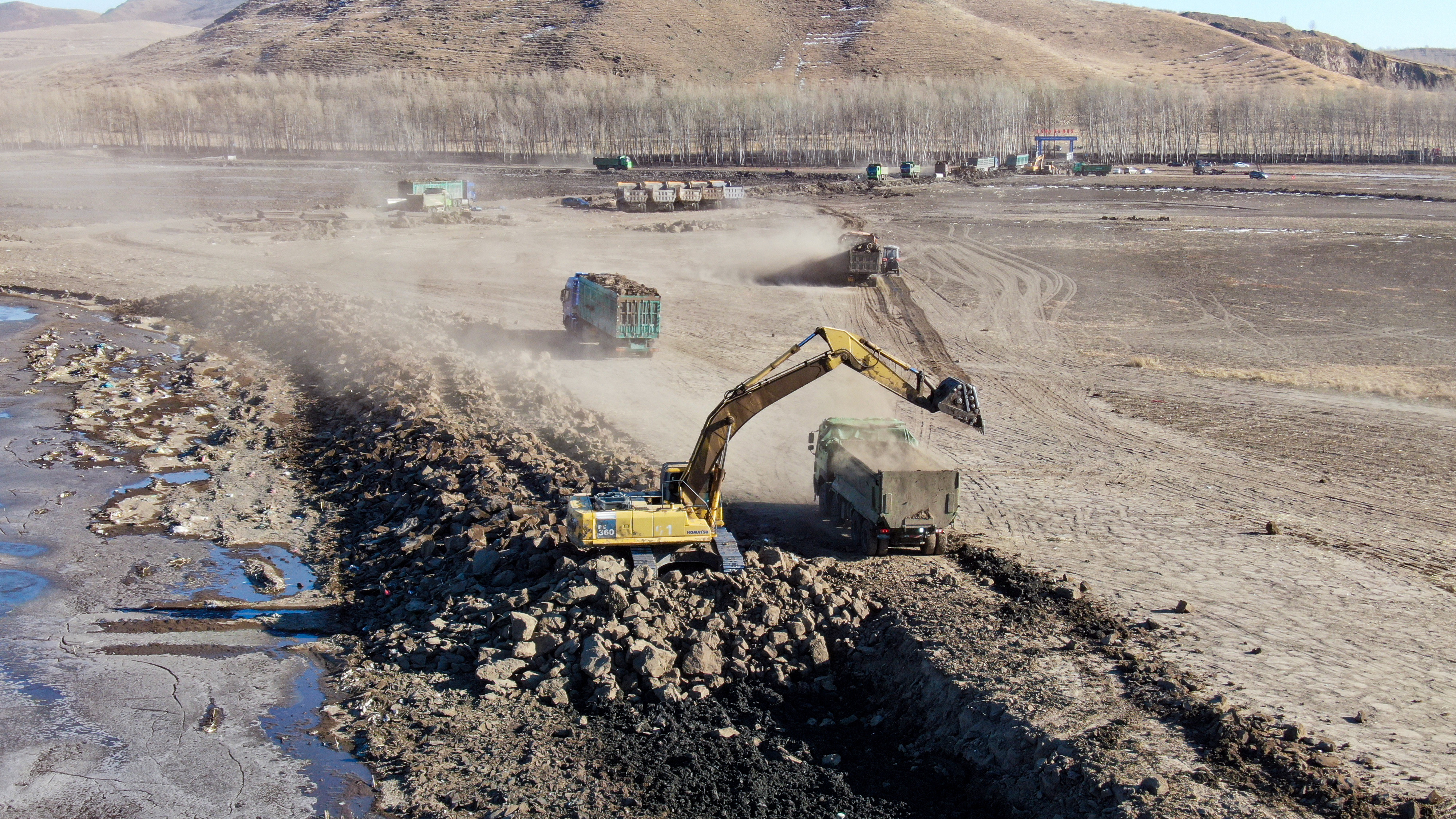 图为施工人员在兴安水库开展淤泥清理工作。新华社发(韩双龙 摄)早春河流水位偏低,正是兴修水利的大好时节。在位于科右前旗巴日嘎斯台乡的兴安水库,大型机械来往穿梭,正在开展淤泥清理工作。水库清淤项目负责人刘仲勋介绍,始建于1958年的兴安水库是下游1.8万亩耕地的主要水源地。多年来,水库淤积的泥沙较多,导致容积减少。“此次预计清理淤泥238万立方米,清理出的淤泥能用来培肥土壤以及转化为有机肥,水库库容也将大幅提高,对当地发展灌溉农业、水产养殖、近郊旅游具有十分重要的意义。”